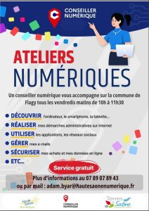 les ateliers numériques reprennent du service à la salle des fetes de Flagy à partir du vendredi 23 janvier de 10H à 11H30.